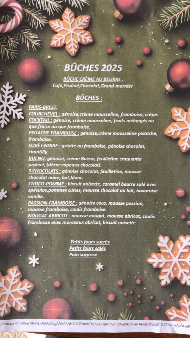 BONJOUR VOICI LA LISTE DES BUCHES DE NOEL 2025